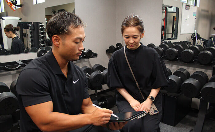 おカラダの悩みや、現在の食生活、普段の運動習慣などについてトレーナーが丁寧にお伺いします。 -